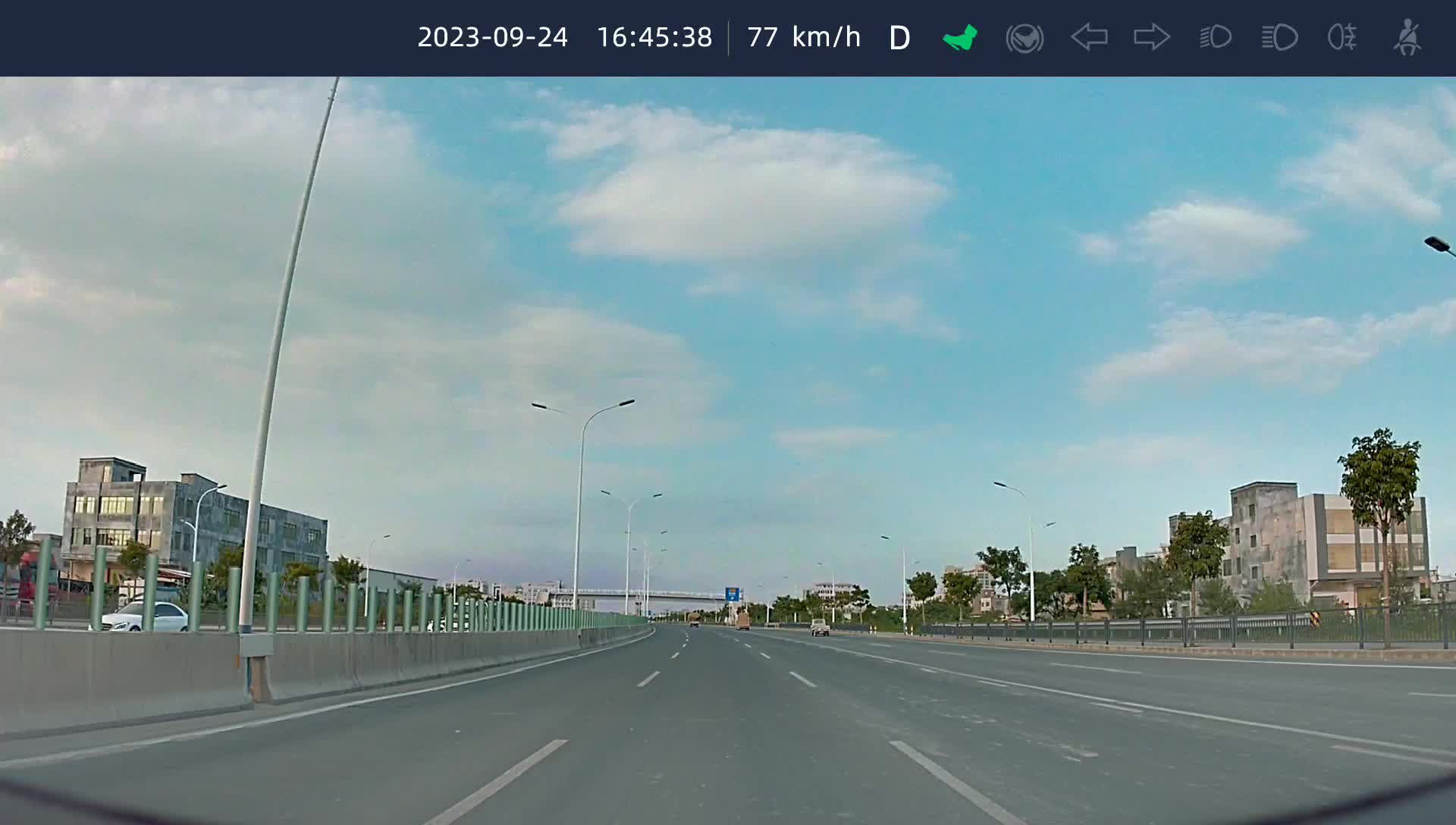 可以看到在过红绿灯之后,只要进入车道了,就可以下拨两次拨杆开启lccl,一路上都是居中行驶,特别舒服。
