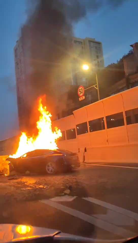 宝马撞击来咯。 车头扁了,驾驶室空间未有影响。 视频可见,驾驶员无伤,可以清醒的活动、沟通、解安全带、没有爆炸。 (图片细节放评论区)
